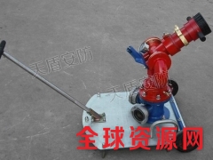 该移动式消防炮主要由移动地盘、拖把、进水管、回转体、炮头等机构组成;移动消防水炮配有两个直径65进水口;在同一压力下,水炮的流量可调整,并可实施直流至90度水雾射流的无级调节,起到更好的灭火降温效果,具有很好的灭火性能。