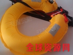 气胀式水上安全圈是专为水上作业人员设计的一种救生用品。体积小、重量轻、易投掷,救生效率高,适合在任何水域中的突发性救生需要。当落水者需要救助时,旁观者可直接将安全圈扔到被救目标旁边。一旦接触到水,安全圈就会在5秒钟内形成一个马蹄形的救生圈浮在水面上,被救目标即可抓住救生圈,保持体位浮在水面上,起到救生的作用。
